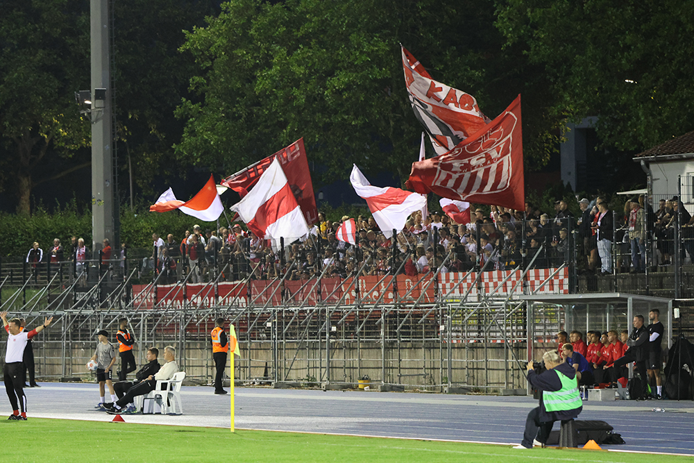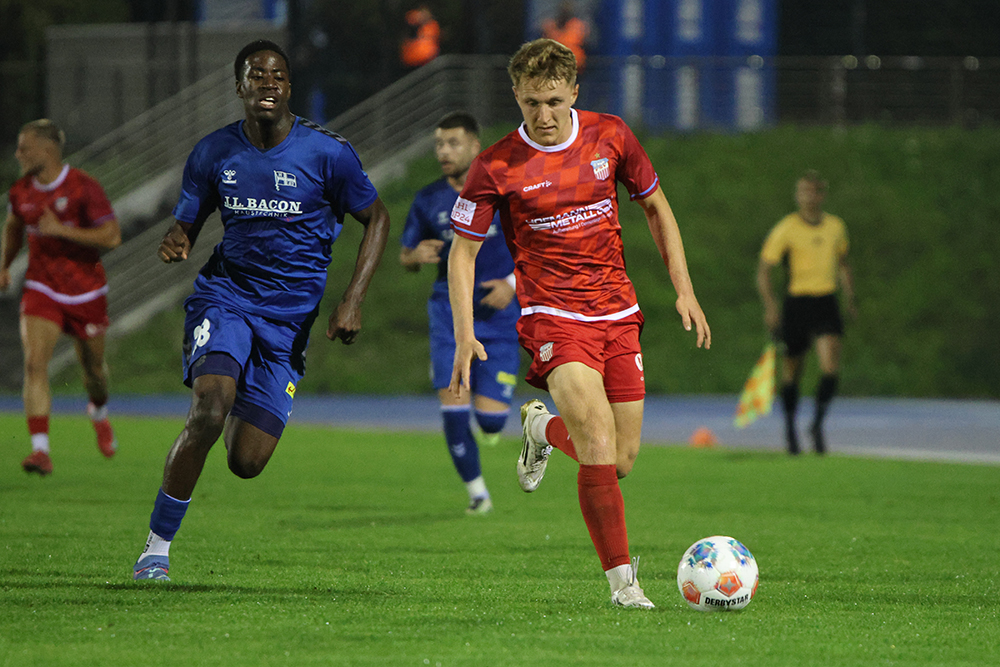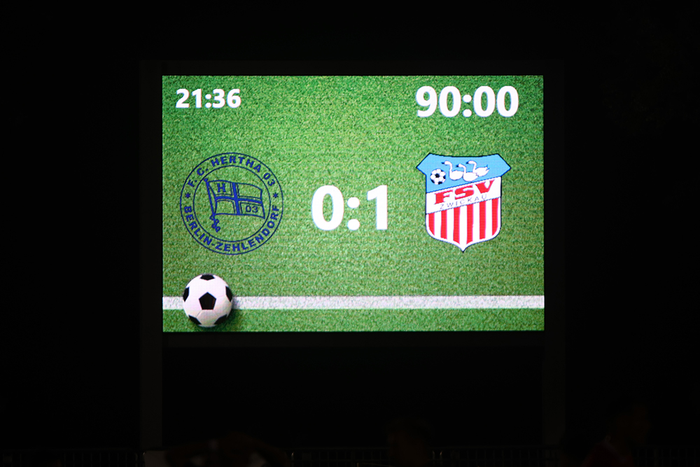 Zum Abschluss der englischen Woche ging es ins Stadion Lichterfelde zum F.C. Hertha 03 Zehlendorf. Da der Mannschaftsbus kurzfristig defekt war, musste mit Kleintransportern angereist werden. Und wie vor fast genau einem Jahr geriet der FSV auf der A9 in eine Vollsperrung. Im Gegensatz zum Vorjahr schaffte es die Mannschaft heute doch noch zeitig genug zum Spiel. In Lichterfelde angekommen, gab es allerdings ein weiteres Problem. Schiedsrichter-Assistent Marko Wartmann stand ebenfalls im Stau. Da in Lichterfelde nicht nach 20 Uhr angepfiffen werden darf war nun guter Rat teuer. Im Fanblock des FSV fand sich ein junger Schiedsrichter vom FSV Schleiz, der als Assistent hätte einspringen können. Einem Abbruch wurde somit vorgebeugt. Im letzten Moment kam Wartmann doch noch an und so konnte es um 19:45 Uhr losgehen. Bei Zwickau gab es im Vergleich zum Dienstag eine Veränderung: Sandro Sengersdorf spielte anstatt Josua von Baer auf der Linksverteidigerposition. Die erste Halbzeit war sehr chancenarm. Theo Martens zog einmal aus der Distanz ab, doch Dedidis lenkte den Ball zur Ecke (14.). Auf der anderen Seite hielt Doll nach einer Ecke drauf. Hiemann passte auf und lenkte den Ball über die Latte (24.). Bei einer scharfen Eingabe von Martens lauerte Haubner in der Mitte, die Zehlendorfer Abwehr klärte auch hier zur Ecke (28.). Letztendlich ging es torlos in die Kabinen.