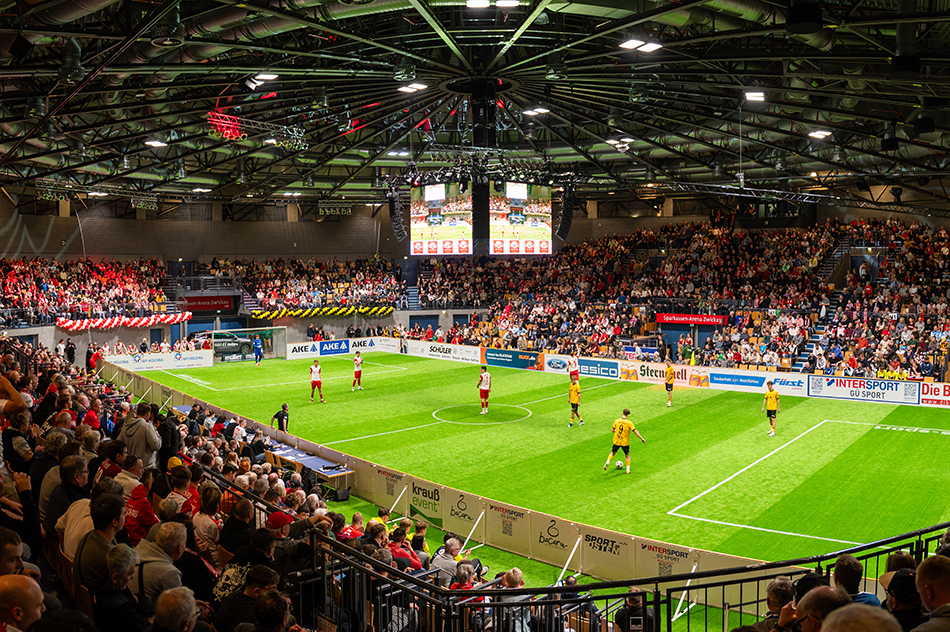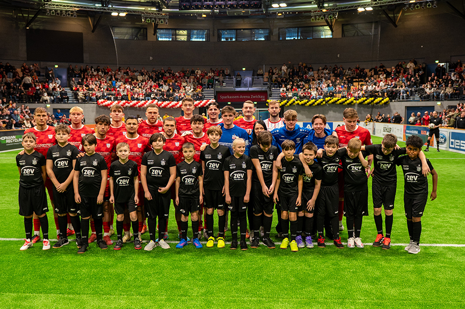 Bereits zum 21. Mal fand das beliebte ZEV Hallenmasters in der Sparkassen-Arena Zwickau statt. Unser FSV Zwickau hatte insgesamt 14 Spieler dabei und startete mit einem 3:3 gegen die U21 von der SG Dynamo Dresden in das Turnier. Zwickau führte bereits mit 3:1, kassierte aber noch den späten Ausgleich und hatte am Ende sogar Glück nicht zu verlieren. Vor dem zweiten Spiel stand dann fest, dass dem FSV ein Remis gegen den VFC Plauen zum Einzug in das Halbfinale reichen würde. Doch darauf wollte man sich nicht verlassen und ging schnell in Führung. Plauen konnte zwar immer mal wieder verkürzen, doch am Ende stand ein klares 6:3.