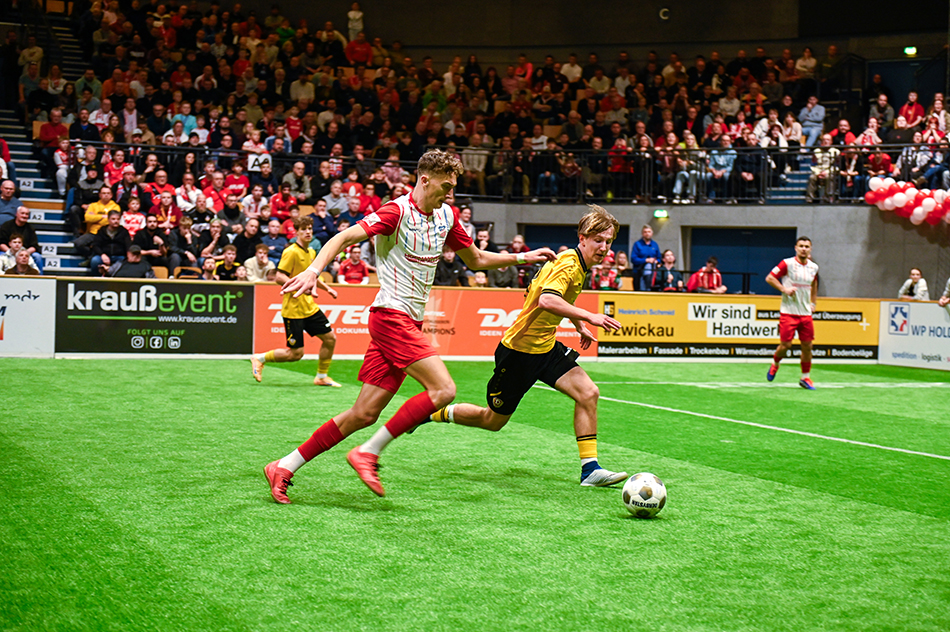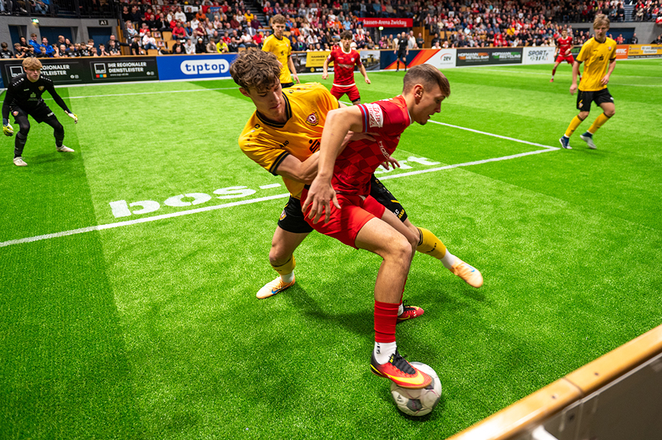 Im Endspiel kam es dann zur zweiten Auflage des Duells gegen die U21 von der SG Dynamo Dresden. Und es war ein echter Krimi. Der FSV ging durch Somnitz in Führung, doch Wuchrer konnte ausgleichen. Die erneute Führung durch Eixler egalisierte Seemann. In Halbzeit zwei kochten die Emotionen dann über. Fobassam bekam nach einem Gerangel eine 2-Minuten-Strafe. In Unterzahl kassierte Zwickau zum ersten Mal einen Rückstand im Turnier. Erneut war es Seemann, der nun zum 3:2 von Dynamo traf. Der FSV gab alles, um die Partie noch zu drehen, scheiterte aber immer wieder am starken Torhüter und der aufopferungsvoll verteidigenden Abwehr. Am Ende blieb den Schwänen das Triple verwehrt. Der neue Sieger des Hallenmasters heißt SG Dynamo Dresden U21.