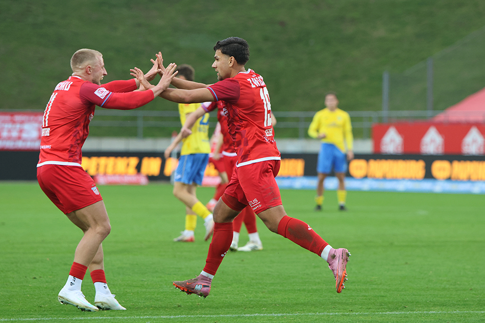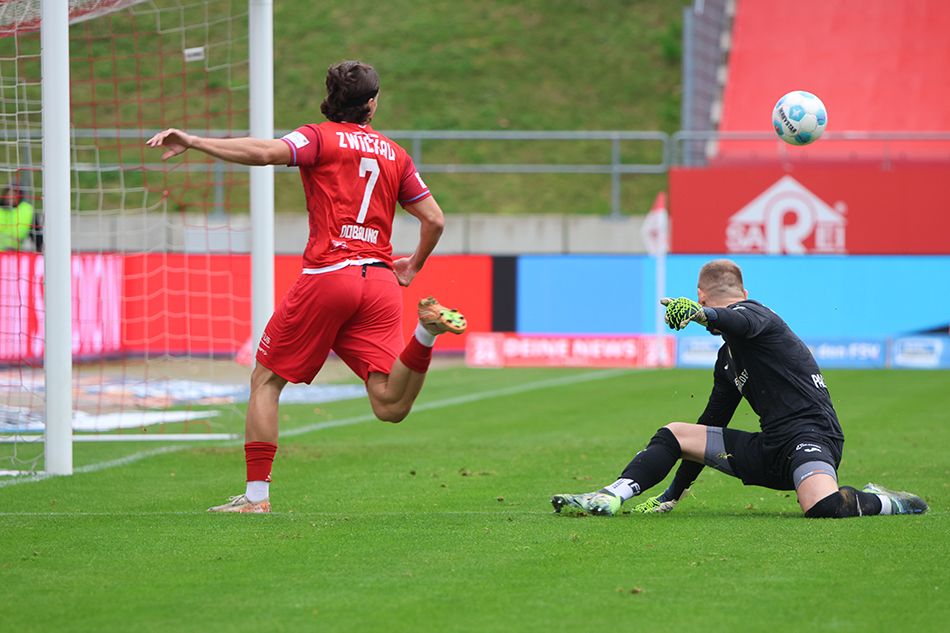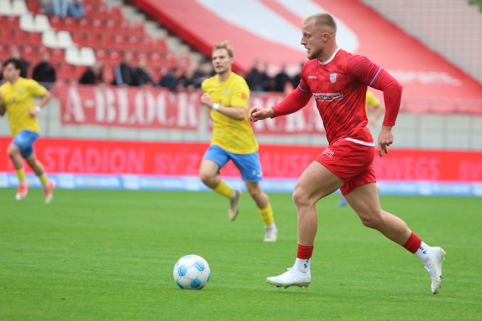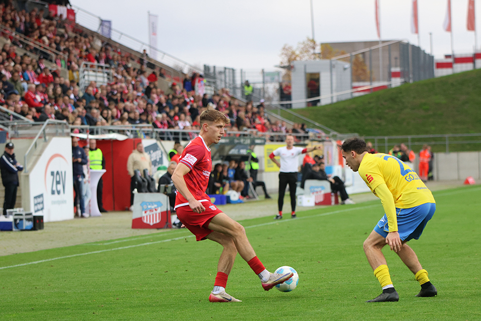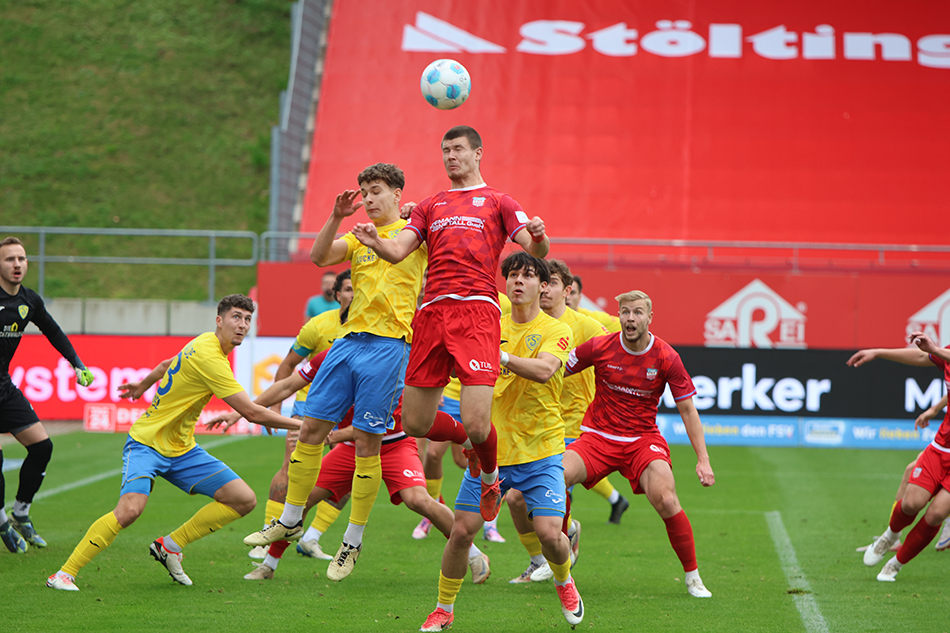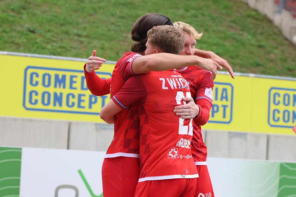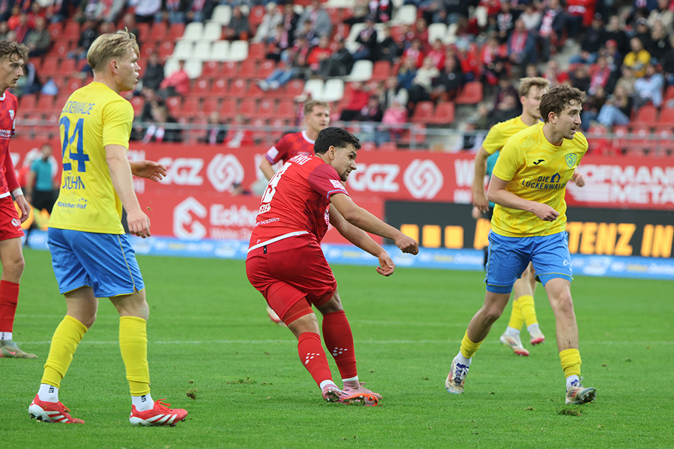 Heute war der FSV Zwickau wieder in der heimischen GGZ Arena gefordert. Gegen den FSV 63 Luckenwalde veränderte FSV-Trainer Rico Schmitt seine Startelf auf zwei Positionen: Cemal Sezer gab sein Startelfdebüt und Theo Martens kehrte nach Erkrankung zurück. Dafür nahmen Nick Breitenbücher und Lennert Möbius auf der Bank Platz. Der FSV startete mit viel Ballbesitz. Luckenwalde stand tief und nah am Mann. Aus einer Umschaltaktion hatten dann auch die Gäste die erste Gelegenheit im Spiel. Maciejewski ging über rechts auf und davon. Sein Abschluss wurde von Hiemann zur Ecke pariert (5.). Doch das sollte erst einmal die einzige Chance für die Gäste bleiben. Zwickau machte nun richtig Druck und kam zu guten Chancen. Sezer schoss unter Bedrängnis aus spitzem Winkel aufs Tor und verfehlte es nur knapp (11.). Und Sezer stand gleich wieder im Fokus. Der Neuzugang aus Jena stibitzte seinem Gegenspieler den Ball weg und legte auf Martens ab. Dessen Abschluss wurde noch abgeblockt (16.). Wenig später war es dann Dobruna, der den Ball aus Nahdistanz aufs Tor brachte, doch Pollasch war noch dazwischen (19.). Ein wunderbarer Spielzug brachte die Führung für unseren FSV. Sezer behauptete das Spielgerät und passte zu Haubner. Der sah, dass Dobruna auf links einlief. Dobruna machte noch einen Haken und traf sehenswert zum 1:0 (29.). Auch nach der Führung blieb der FSV am Drücker. Der eingewechselte von Baer flankte mit Schnitt in die Mitte, wo Sezer am Tor vorbei köpfte (33.). Schließlich hatten auch noch Martens und Dobruna eine Doppelchance, doch bis zur Pause blieb es bei der knappen Führung.