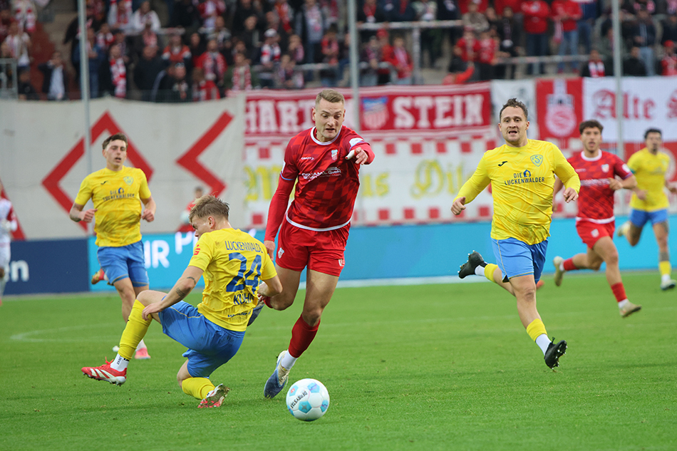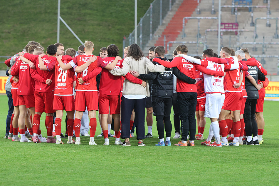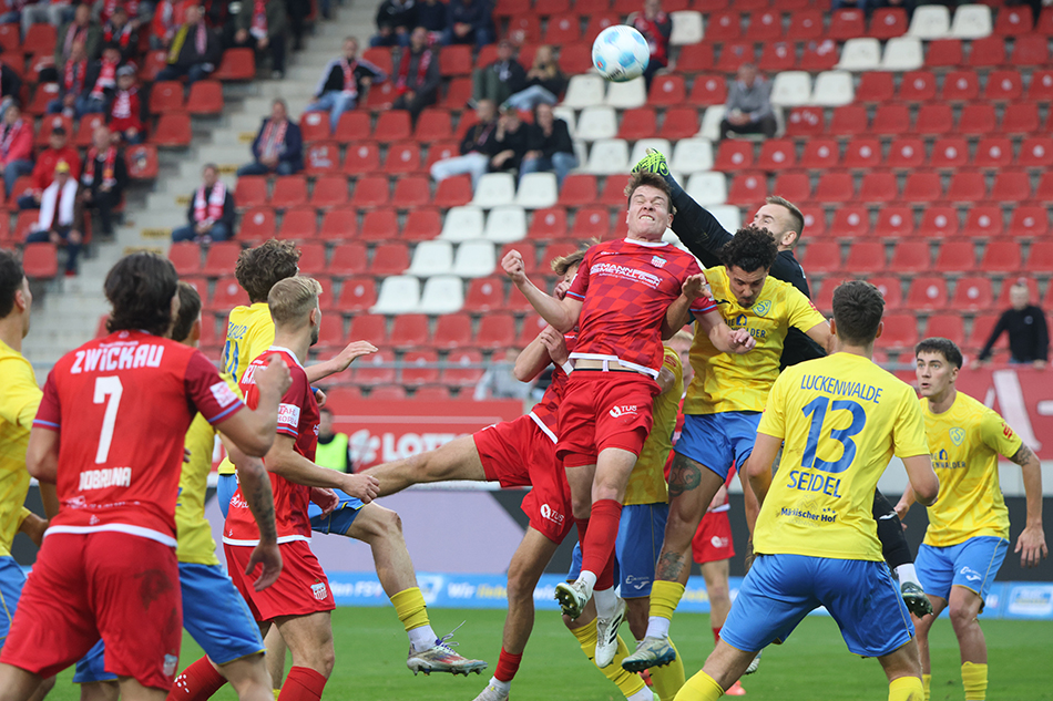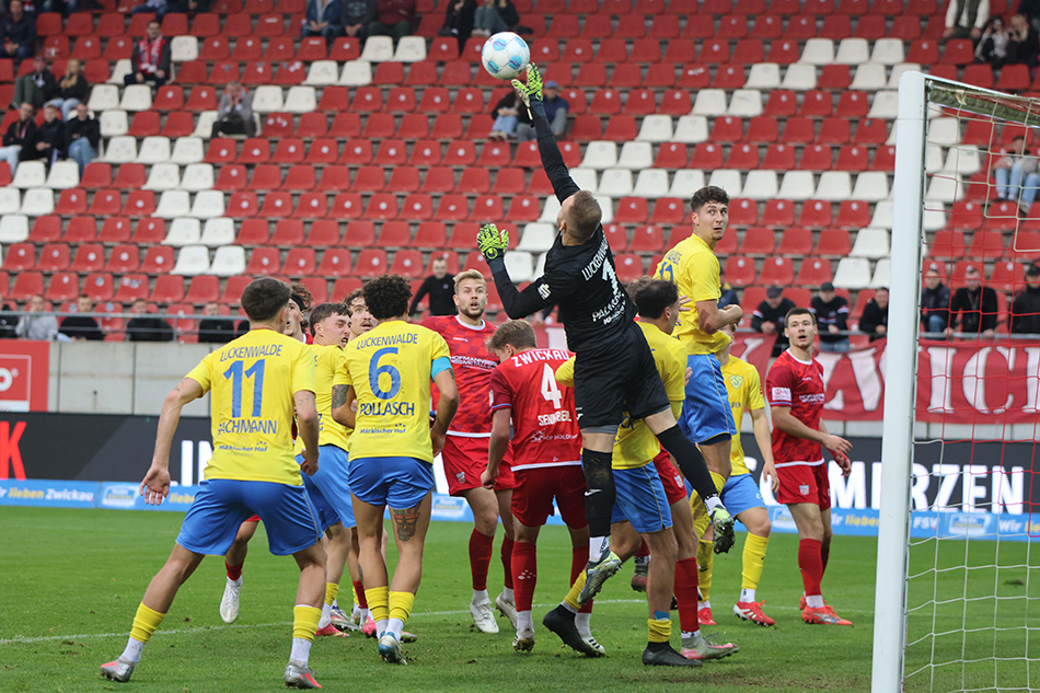 Wie schon in der ersten Halbzeit hatte Luckenwalde die erste Chance, doch Gollnack verpasste am langen Pfosten die Möglichkeit zum Ausgleich (47.). In der Folge war es erst einmal eine Partie, die sich mehr im Mittelfeld abspielte. Dies sollte sich noch ändern. Eine Eingabe von von Baer landete bei Sezer, der den Ball gekonnt runterpflückte und überlegt zum 2:0 traf (64.). Nun ging so richtig die Post ab. Zwickau hatte eine Chance nach der anderen. Eine Eingabe von Martens landete auf dem Tornetz (69.) und Haubner schoss haarscharf links vorbei (70.). Als Dobruna vor dem leeren Tor zum Abschluss kam, hat sicherlich jeder den Ball schon drin gesehen, doch Seidel konnte irgendwie noch klären (72.). Im Minutentakt ging es weiter, doch Haubner, Ziemer und von Baer verpassten den Deckel endgültig drauf zu machen. Das gelang dann dem eingewechselten Nick Breitenbücher. Nach einem schnell ausgeführten Einwurf ging Eixler auf und davon, legte quer und Breitenbücher schob zum 3:0 Endstand ein (81.). Eine Chance zur Ergebniskosmetik hatten die Gäste dann doch noch, Hiemann hielt den Kopfball von Jannene bravourös (87.). Am Ende war es ein hochverdienter Heimsieg, der durchaus hätte höher ausfallen können. Nächsten Samstag geht es dann nach Thüringen zum FC Rot Weiß Erfurt.