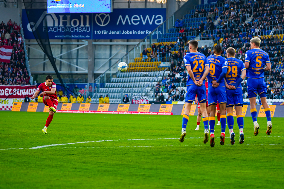 Die zweite Hälfte begann dann so wie sich nicht beginnen sollte. Nach einem Eckball sprang Oduah am langen Pfosten am höchsten und traf zum 3:1 (50.). Kurz darauf war Lankford frei durch, Hiemann konnte reaktionsschnell mit der Hand zur Ecke klären (53.). Auch diese brachte Gefahr, Reddemann köpfte knapp drüber (54.). Die große Chance, erneut zu verkürzen hatte Sezer. Von Eixler geschickt, war er schon an Torwart Liesegang vorbei, doch im letzten Monat konnte Hessel klären (59.). Jena zog sich nun weiter zurück, was es dem FSV immer schwerer machte, gefährlich nach vorne zu kommen. Bei einem weiten Ball kam Hiemann weit aus seinem Tor und wollte klären. Das ging schief, so dass Oduah nur noch ins leere Tor zum 4:1 einschieben musste (74.). Schließlich legten die Zeiss-Städter sogar noch einen nach. Wähling wurde geschickt und traf mit einem abgezockten Flachschuss zum 5:1 (89.). Kurz vor Ende der Nachspielzeit tauchte noch einmal Möbius vor Liesegang auf, konnte aber nicht mehr für Ergebniskosmetik sorgen. Am Ende steht eine deutliche Niederlage an den Kernbergen. Bereits am Wochenende geht es zur längsten Auswärtsfahrt der Saison, wenn der FSV am Sonntag beim Greifswalder SV gastiert.