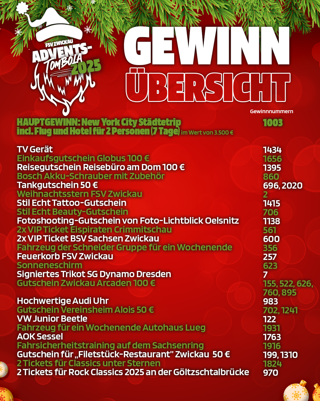 UPDATE: DIE GEWINNER DER FSV ZWICKAU ADVENTSTOMBOLA 2025 STEHEN FEST!
